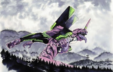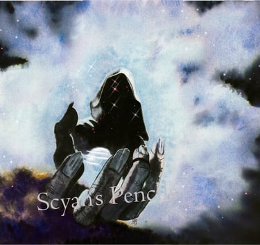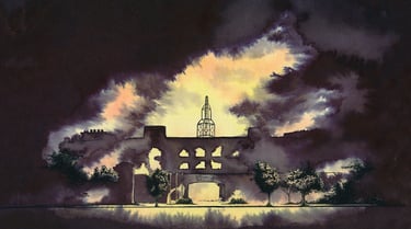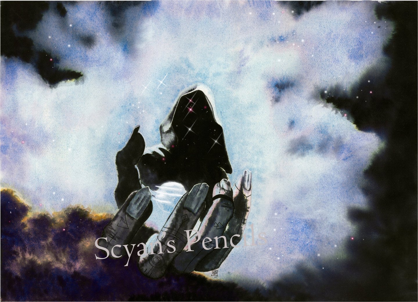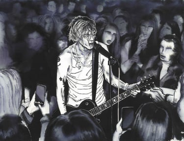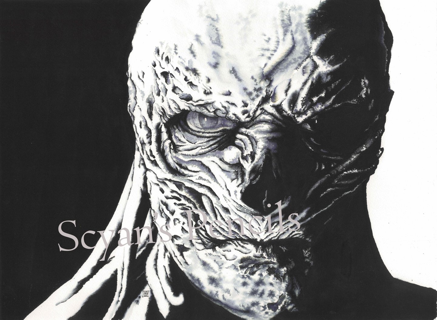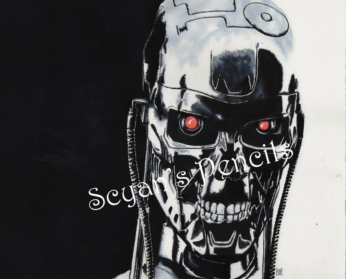 L'écoline noire permet cette intensité dans les teintes sombres et ces variantes bleutées ou jaunes là où elle se diffuse dans l'eau.